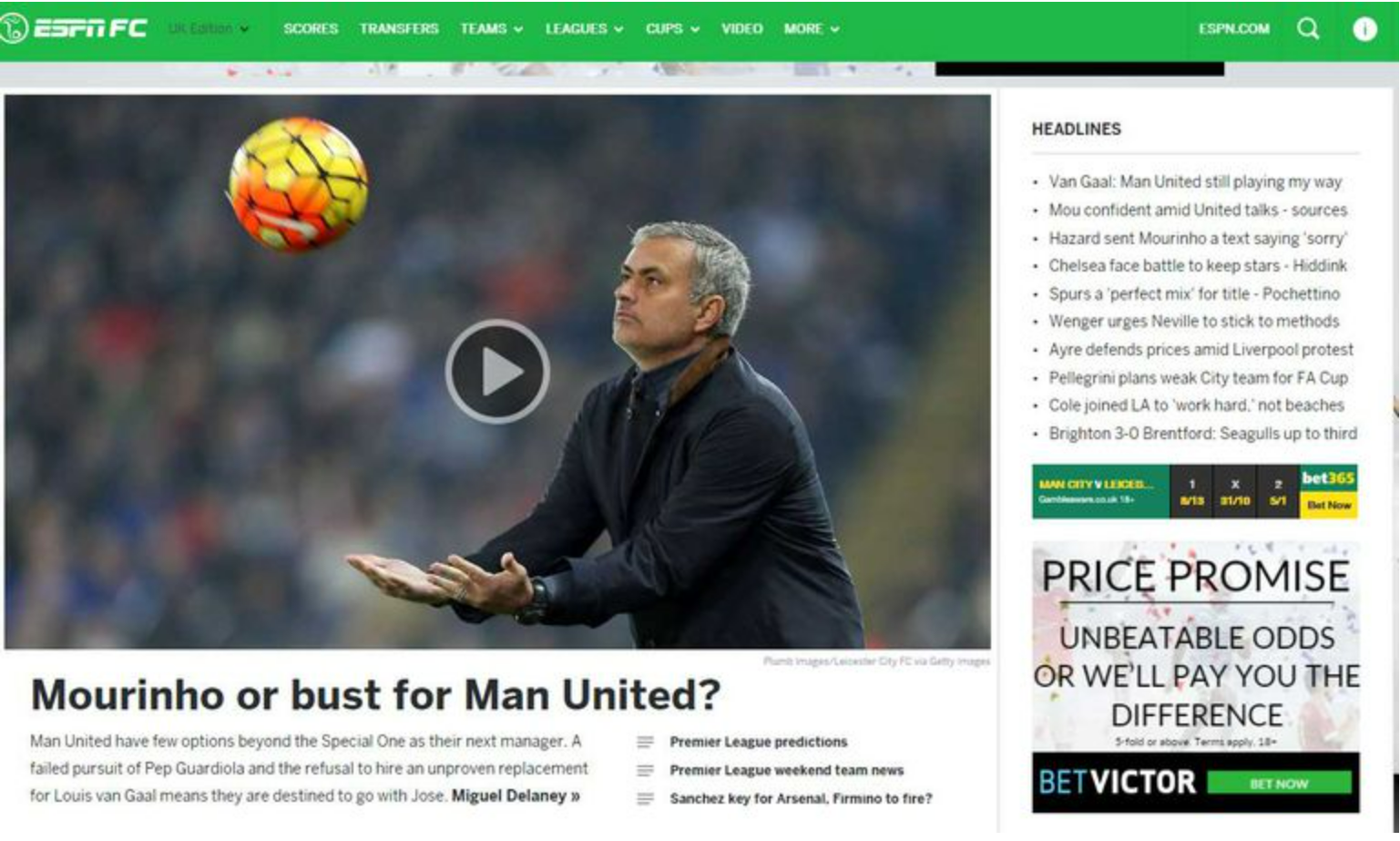 我对所有足球知识的来源,ESPN Soccernet让我保持最新,因为我对这个美丽的游戏感兴趣。 这个足球门户网站的菜单上有来自体育各个方面的突发新闻,专家意见和完整的统计数据。