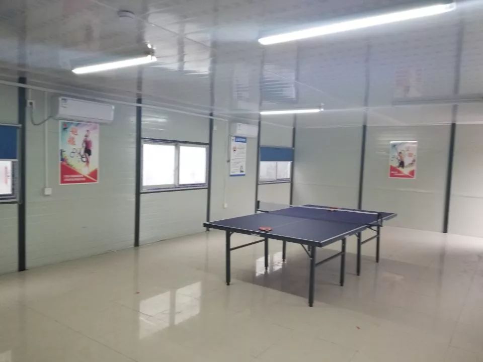 普工刘桂河一步步看着工地的各项文体配套建起来,“你看啊,我们阅览室布置好了,多宽敞,等把书放进去我们就可以用了。还有乒乓球馆、篮球馆什么的也都快弄好了。"