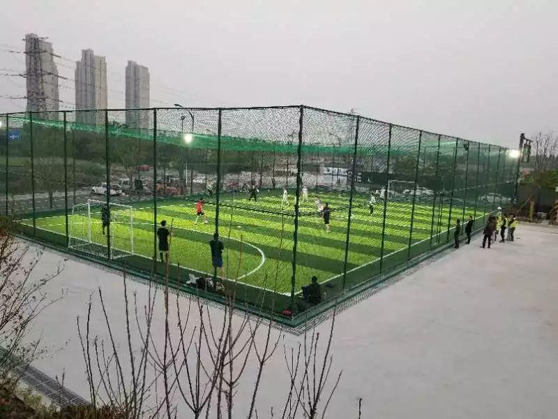 工地里竟有个足球场?对,而且还是个标准的五人制足球场。