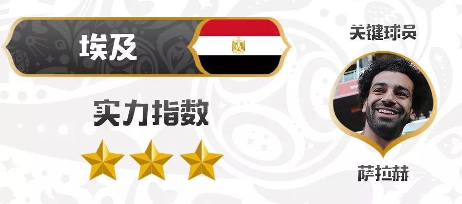 埃及队由目前足坛备受瞩目的明星萨拉赫 领衔。在过去一个赛季里,萨拉赫获得英超联赛金靴并将利物浦队带进了欧冠决赛。埃及队的分组形势虽不算差,但球队整体实力偏弱,能否有突出成绩还需看萨拉赫的状态和发挥。