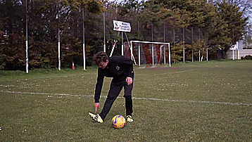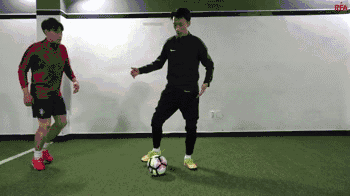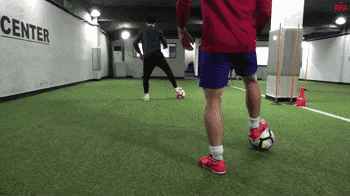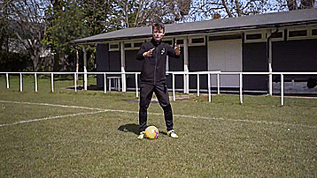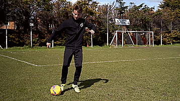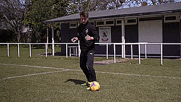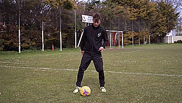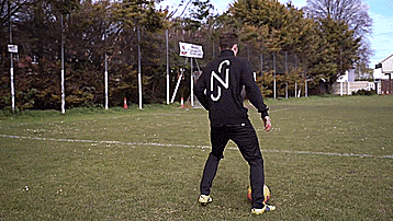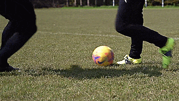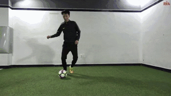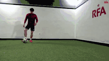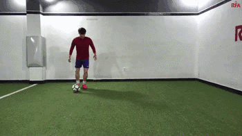 这个动作本身是两次干净的触球,从我们的脚内侧触球开始,我们向内轻轻触球看似要穿过身体。