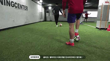 这个动作我们只需要两次触球,首先,我们要用脚内侧将球停住,最重要的是我们要把球控制在我们脚内侧范围,这意味着我们要让我们的双肩朝向防守者,我们可以沿着边线下底或者内切。