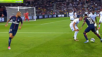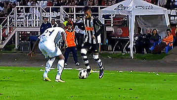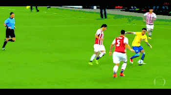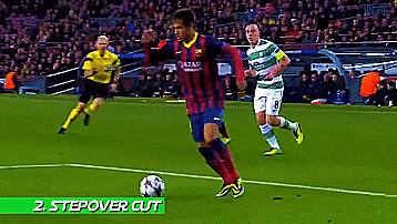 内马尔通常在靠近球场边缘的时候使用这个动作,这样对方的防守者就不知道他是要内切射门还是沿边线下底传中。