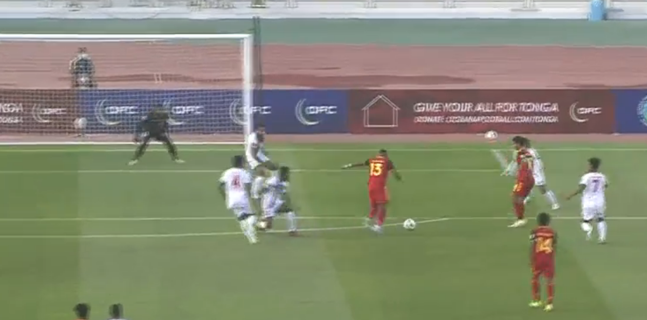 比赛开始后,巴布亚新几内亚队在控球率上占优,但新喀里多尼亚队的进攻更有效率。上半场,就完成了5次射门其中2次射正。但是,率先进取的却是巴布亚新几内亚队。上半场第8分钟,巴布亚新几内亚队打出快速反击,球队9号前锋身体强壮,冲击力很强,最后助攻队友得分。