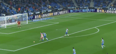 第45分钟,登贝莱直传,路易斯-苏亚雷斯禁区左侧强行突破大卫-洛佩斯后,小角度低射远角穿裆破门,3-0。
