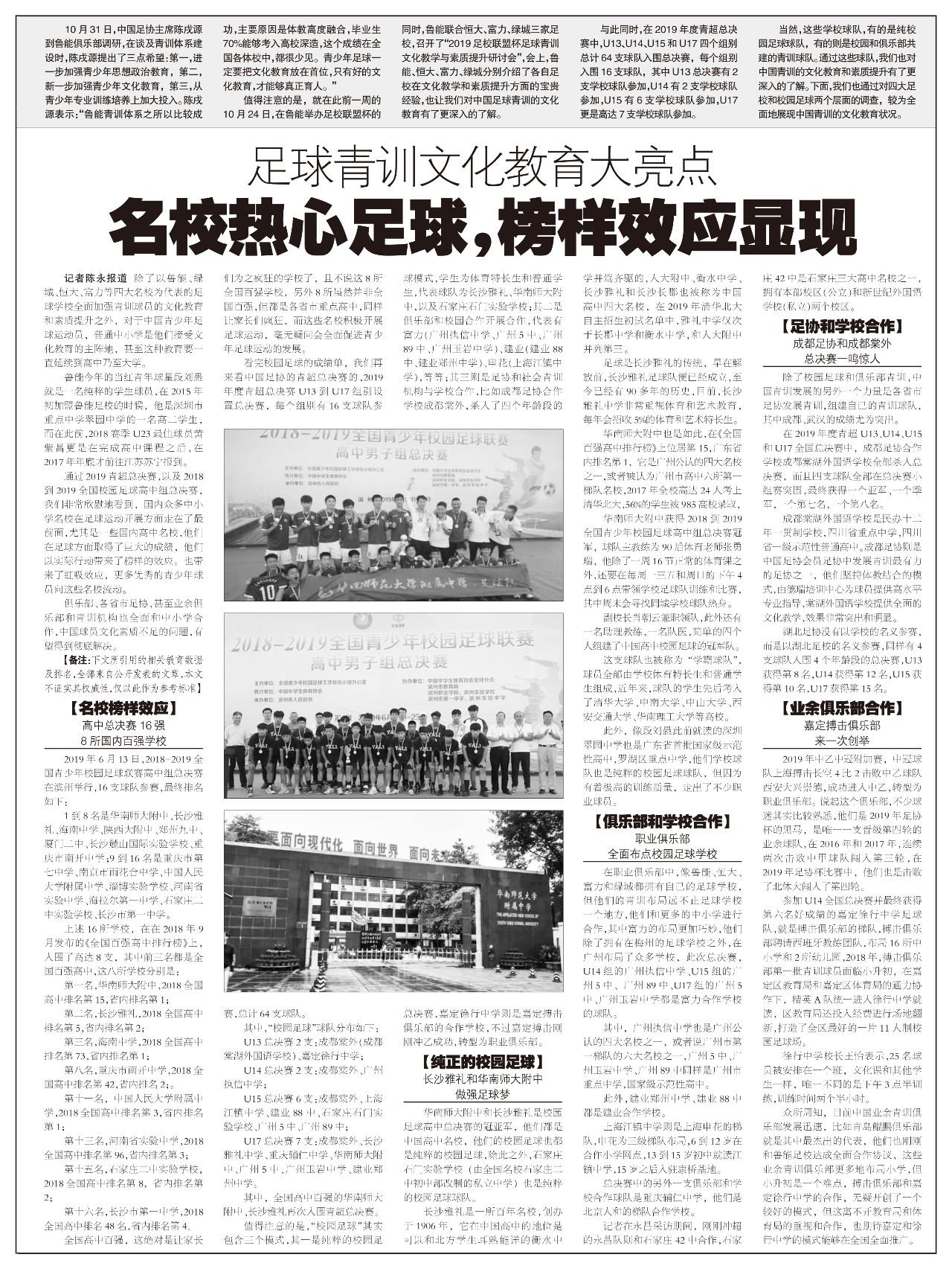 通过2019青超总决赛,以及2018到2019全国校园足球高中组总决赛,我们非常欣慰地看到,国内众多中小学名校在足球运动开展方面走在了最前面,尤其是一些国内高中名校,他们在足球方面取得了巨大的成绩,他们以实际行动带来了榜样的效应。也带来了虹吸效应,更多优秀的青少年球员向这些名校流动。