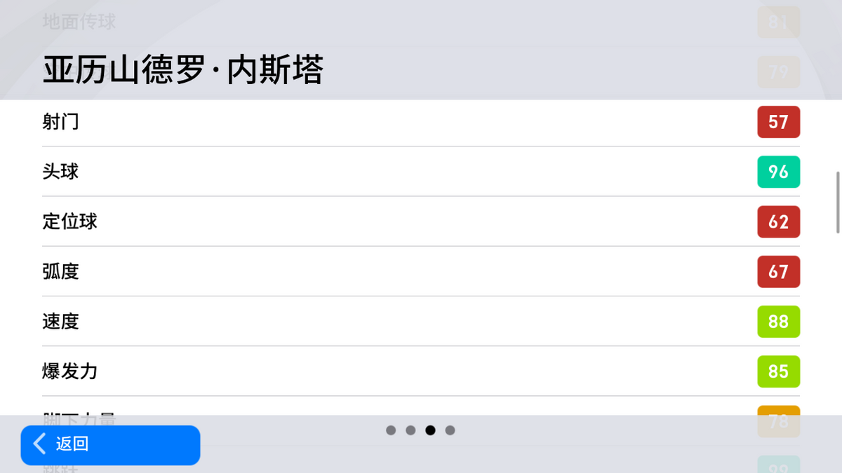 同时,作为一名优秀的中后卫,内斯塔的机动性也是可圈可点,88的速度辅以85的爆发力,能够让他迅速抵达危险区域范围展开工作。同时这个双速值本身也确保了对方前锋很难持球甩开内斯塔,一经粘连,必定让对手无功而返!
