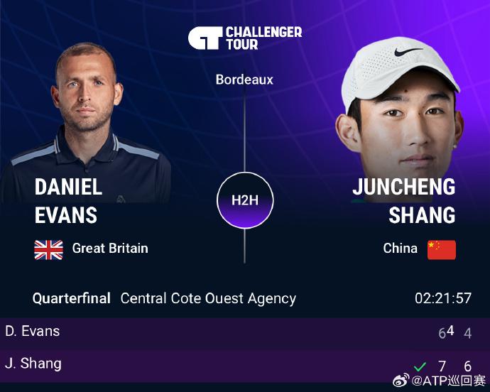 5月17日,ATP波尔多挑战赛继续进行,中国小将商竣程面对英国名将埃文斯打出了一场跌宕起伏的比赛,他一度错失5个赛点,但最终还是以2比0击败对手晋级赛事四强。