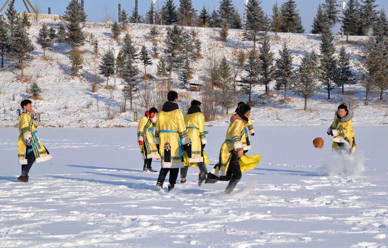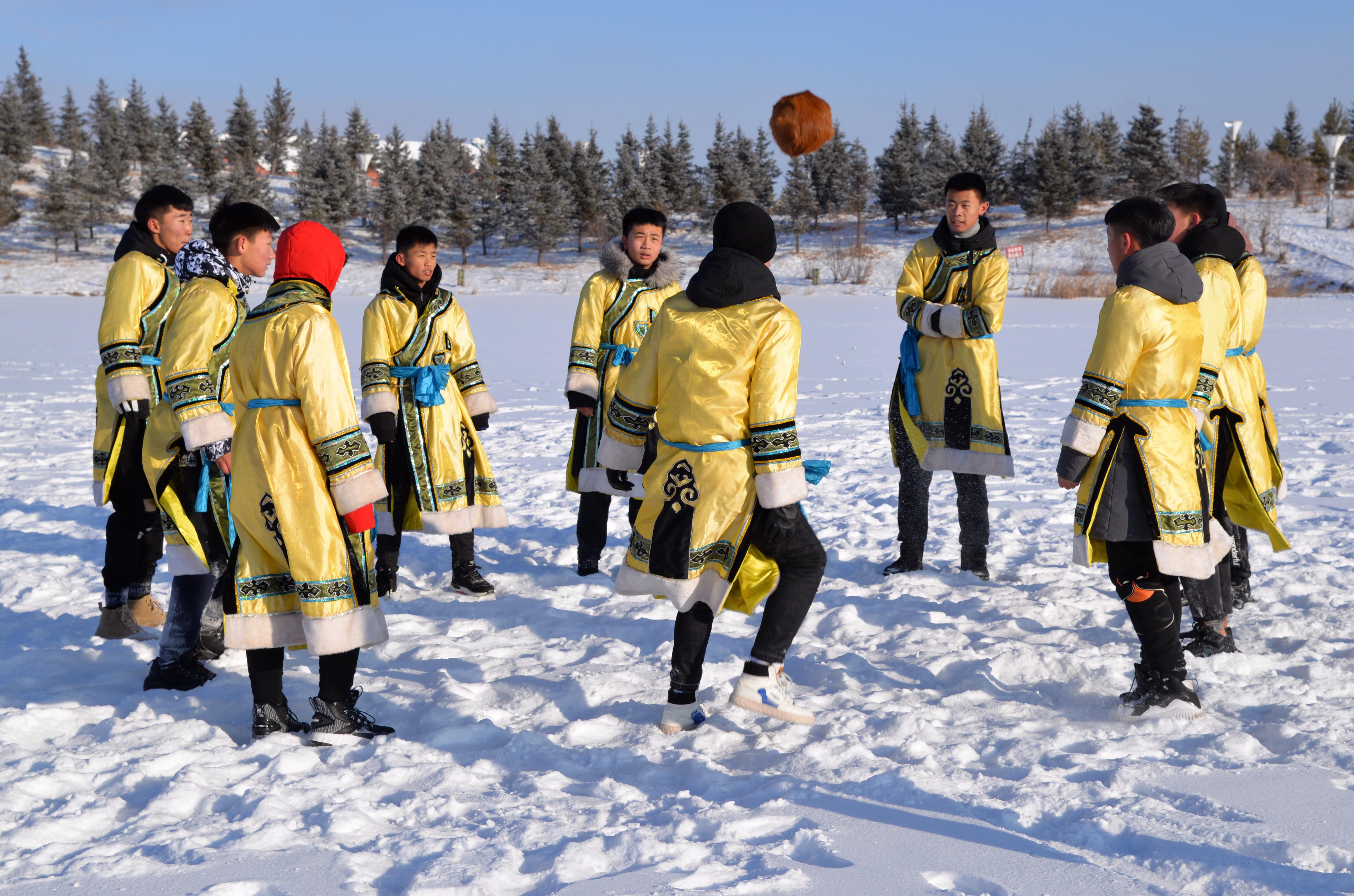 雪后的内蒙古自治区呼伦贝尔市鄂伦春自治旗,一片银装素裹。在嘎仙湖冰封的湖面上,十几名少年正在踢球。走近一看发现,他们脚下的“足球”十分奇怪:用动物皮毛缝制的球体是一个不规则的扁球形,落到地上几乎没有弹性,用手掂一掂还挺沉。