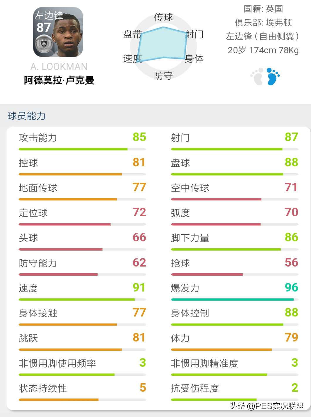 现年20岁的卢克曼被誉为新罗本,在游戏中的手感非常灵活,并且爆发力惊人,高突后的内切射门在新引擎中堪称无解的存在。