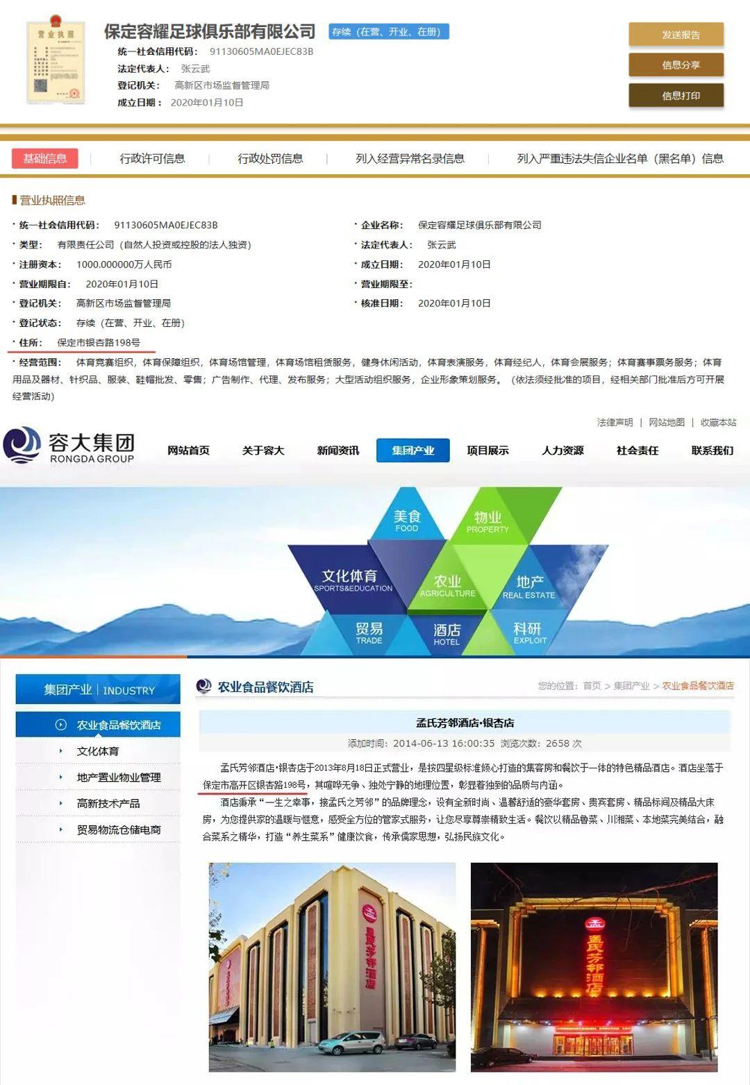 如果老板真的没钱了,那我们可能也就真的没办法了,但是,在没有解决我们欠薪的情况下,他们竟然又搞了一个叫保定容耀的足球俱乐部,而且要去打中冠,这玩的就是金蝉脱壳了,他们这个俱乐部注册的地址,就是原来保定英利易通俱乐部的注册地址,听说保定容耀的法人就是老板的下属,说起来,去年保定英利易通俱乐部的法人,就变更了很多次。