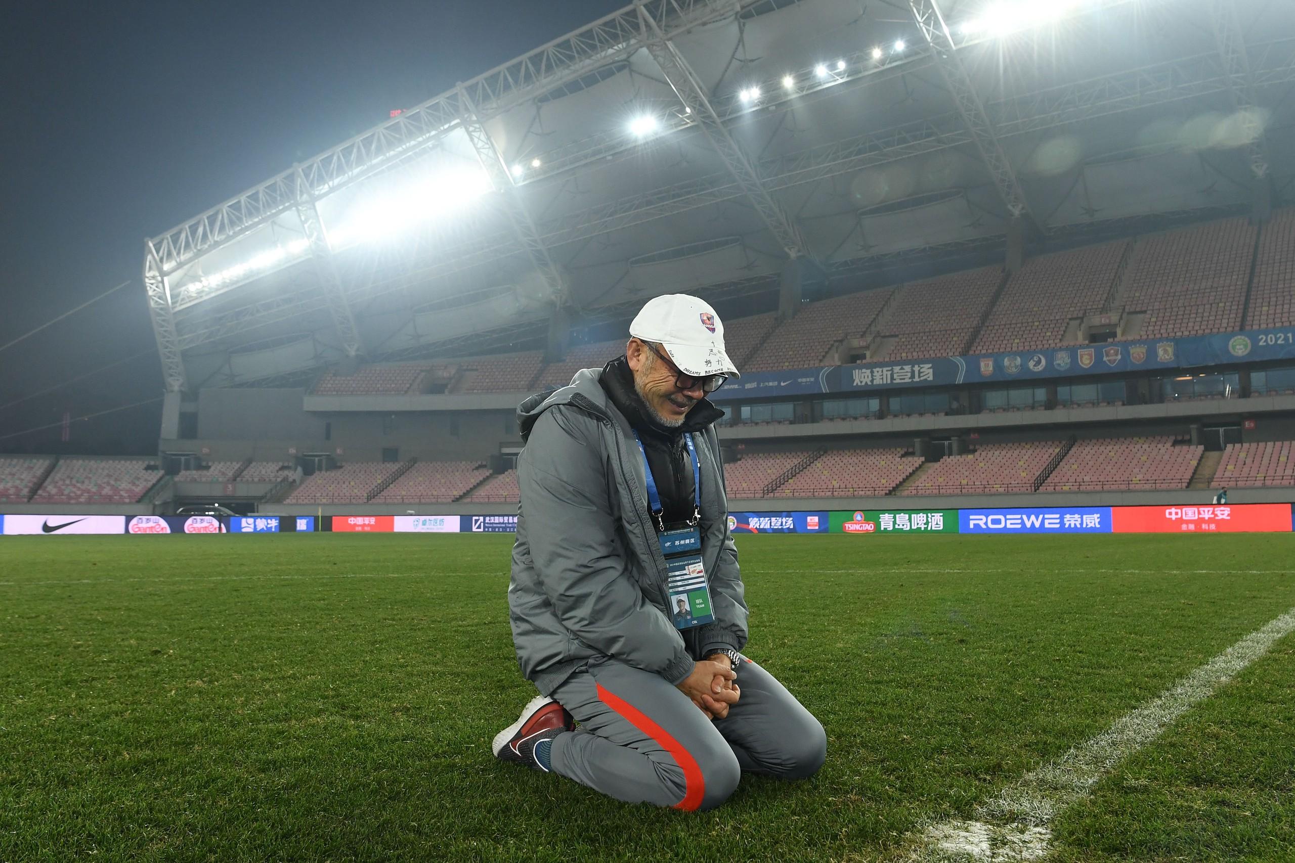 上赛季保级成功后,重庆队外教张外龙跪在场内,泪流满面。