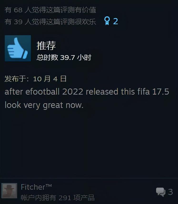 然而《FIFA22》目前收获了“特别好评”,许多留言表示在见过实况2022之后,连《FIFA22》也变得眉清目秀起来。