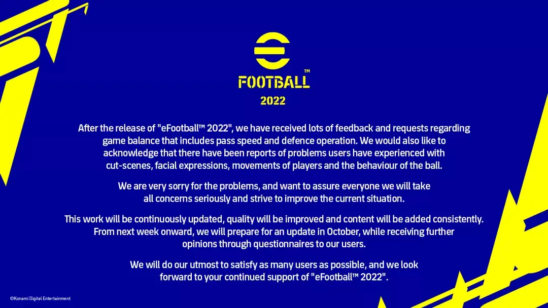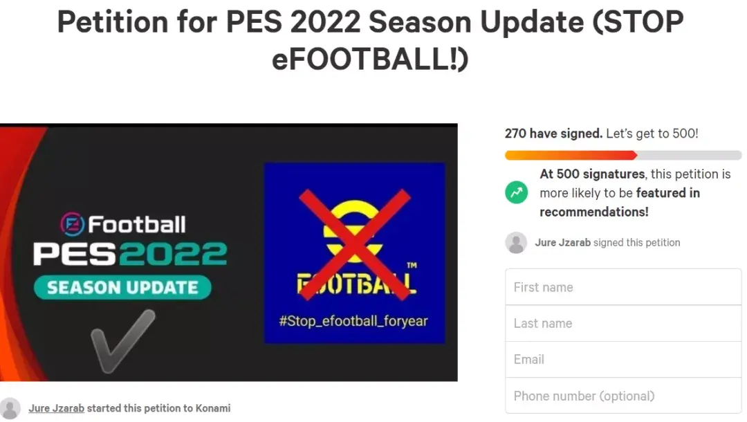 但大家并没有对这所谓的后续更新产生什么期待,甚至有玩家发起了请愿,呼吁科乐美收了神通,继续老实卖它的实况2022资料升级包。