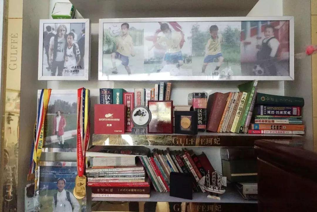 在距离正阳办九张村村委会不远的地方,一个普通的农家小院里,竹风清凉,石碾制成的桌椅静卧于槐树之下,别有一番风情。张奥凯的家是个农家庭院,庭院四处弥漫着淳朴清雅的田园气息,在张奥凯爸爸的邀请下,小布走进屋内,清爽的窑洞内飘着淡淡的墨香,家中随处可见的“足球元素”瞬间把大家带入主题。