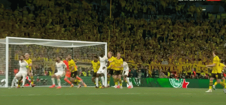 皇马本赛季在多线战场上只遭遇两场失利,马德里竞技依靠边路传中+高空轰炸的方式让同城对手吃到苦头。菲尔克鲁格的制空能力毋庸置疑,这名高大中锋的脚下移动能力也不容低估,这是多特蒙德既可以保有流动性很强的中前场模块,还能够在阵地战中向对手施加巨大压力的原因所在。琼阿梅尼因伤缺阵,米利唐伤愈复出后状态不佳,纳乔首次在欧冠决赛中先发亮相,皇马后场的防空能力存在明显漏洞。可惜的是,当多特蒙德转入阵地进攻模式后,阿德耶米和桑乔的能量下降很快,菲尔克鲁格只获得了一次近距离头球攻门的机会。