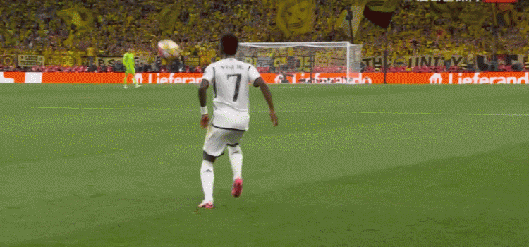 维尼修斯持续不断地尝试一对一,终于制造出了打破僵局的角球。
