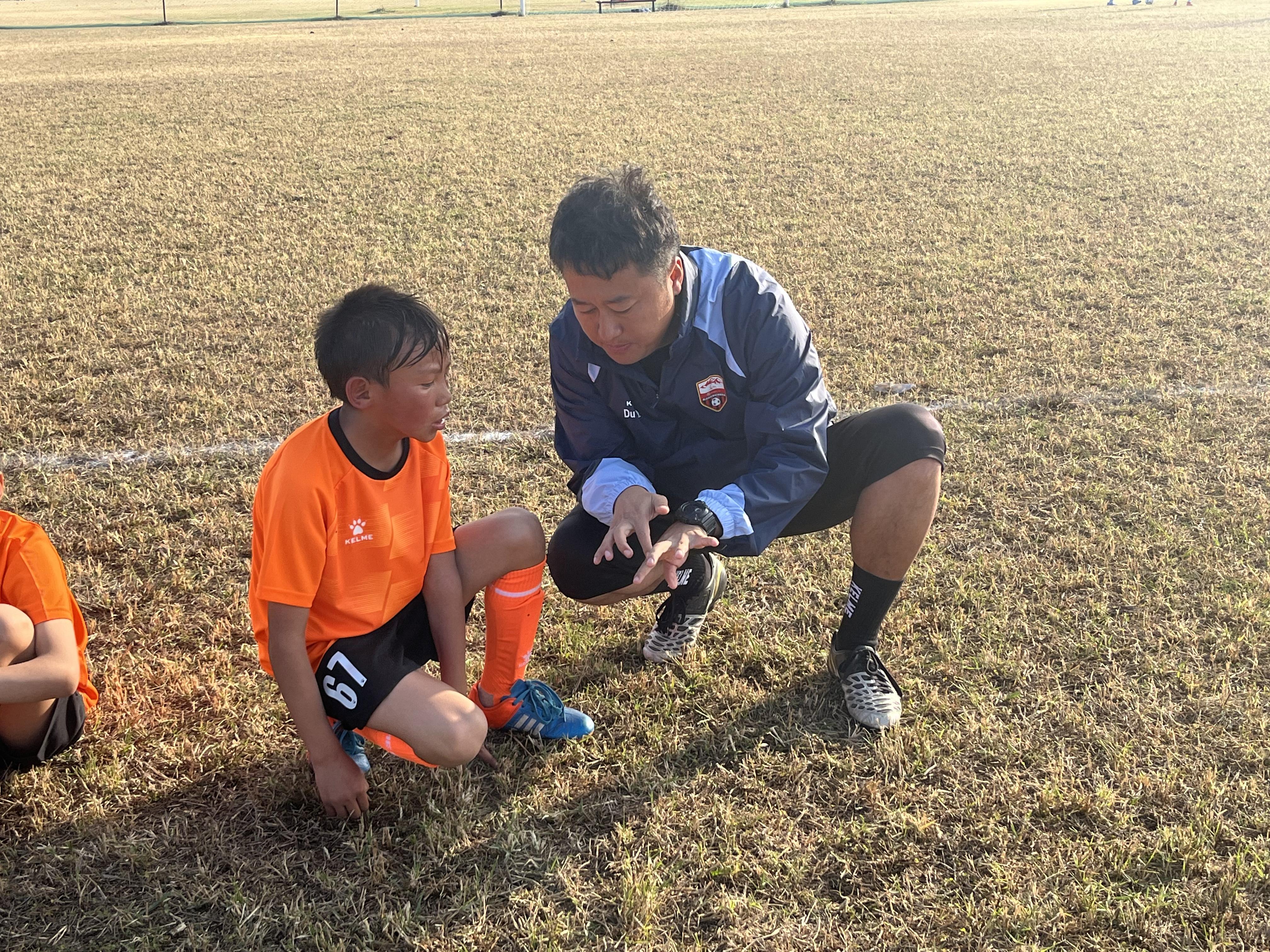 青海曲麻莱克瑞斯代表队主教练杜国庆指导小球员踢球。新华社发(受访者供图)