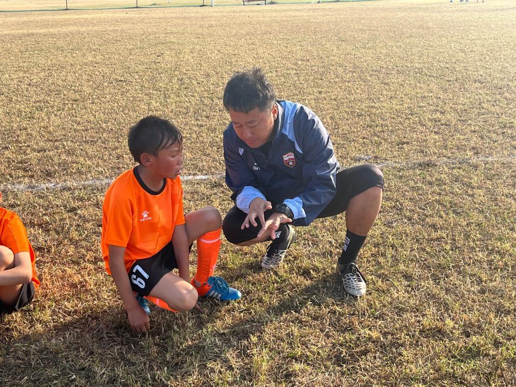 河南洛阳市代表队主教练刘全昆正在指导小球员们训练。新华社发(受访者供图)