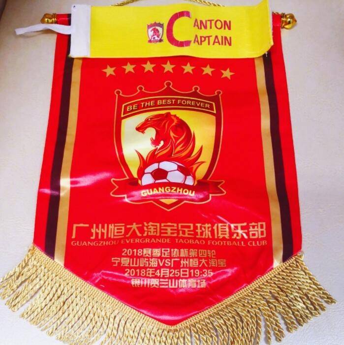 此外恒大本场比赛的交换队旗也有惊喜,队旗上印有本场比赛的对阵双方、对阵时间以及比赛场地。