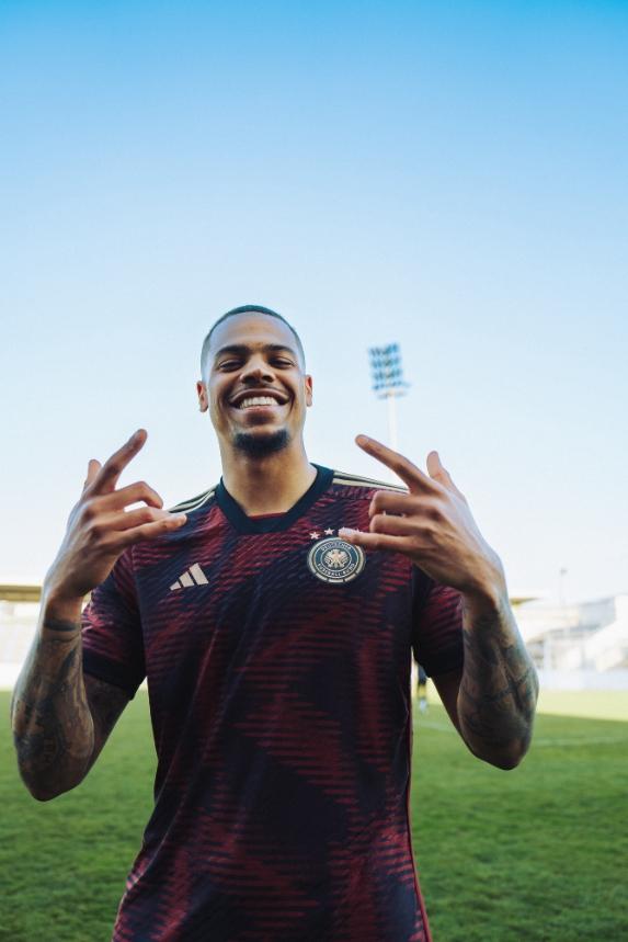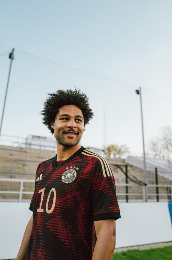 这套球衣主体为红色,三色搭配也是对拜仁俱乐部的致敬,因为拜仁是唯一一支赢得过三冠王的德国男子足球队,俱乐部格言Mia San Mia装饰在外侧颈部。