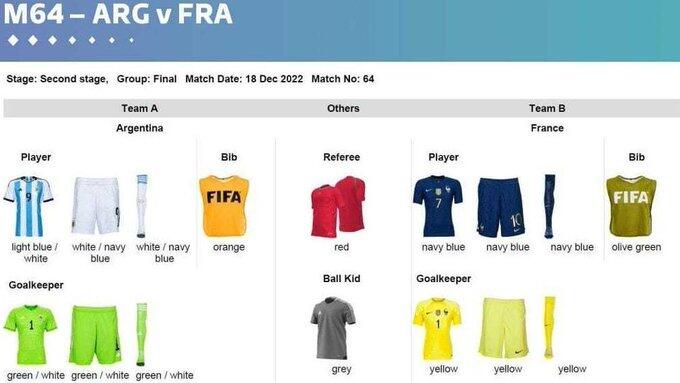 法国军团身穿全蓝色球衣赢得了2018年俄罗斯世界杯。除了小组赛最后一场对阵突尼斯的比赛外,法国队在本届杯赛中一直穿着类似法国三色旗的球衣。与此同时,阿根廷队将穿着标志性的白蓝条纹衬衫、白短裤和白蓝袜子。