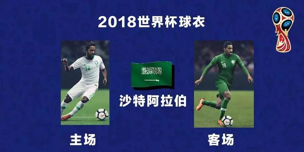 主场球衣胸前的徽章是沙特足协2017年刚刚启用的足协及国家队标识,椰枣树、中东绿鹰和足球共同构建起沙特足球的新形象,下方字母“KSA”是沙特阿拉伯王国的英文名称缩写。