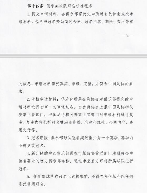 新规第13条规定,俱乐部全称应规范为:俱乐部全称+所冠名称+队,简称应规范为“俱乐部简称+所冠名称+队”