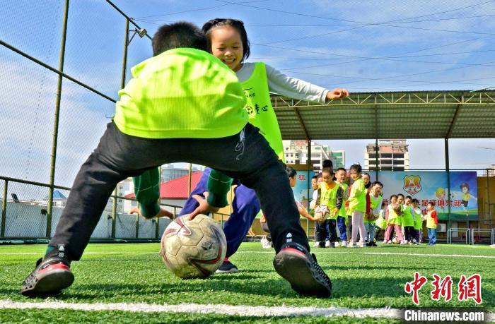 王东明 摄 幼儿园小朋友带球过人、射门等,真是萌翻了。近来,福建省泉州市泉港区鼓励辖区各中小学、幼儿园以“快乐足球”为引领,有目的、有计划地把足球运动和趣味足球列入体育课教学内容,让足球元素从幼儿开始渗透,不断激发孩子们对足球体育运动的乐趣。(王东明 林弘梫)