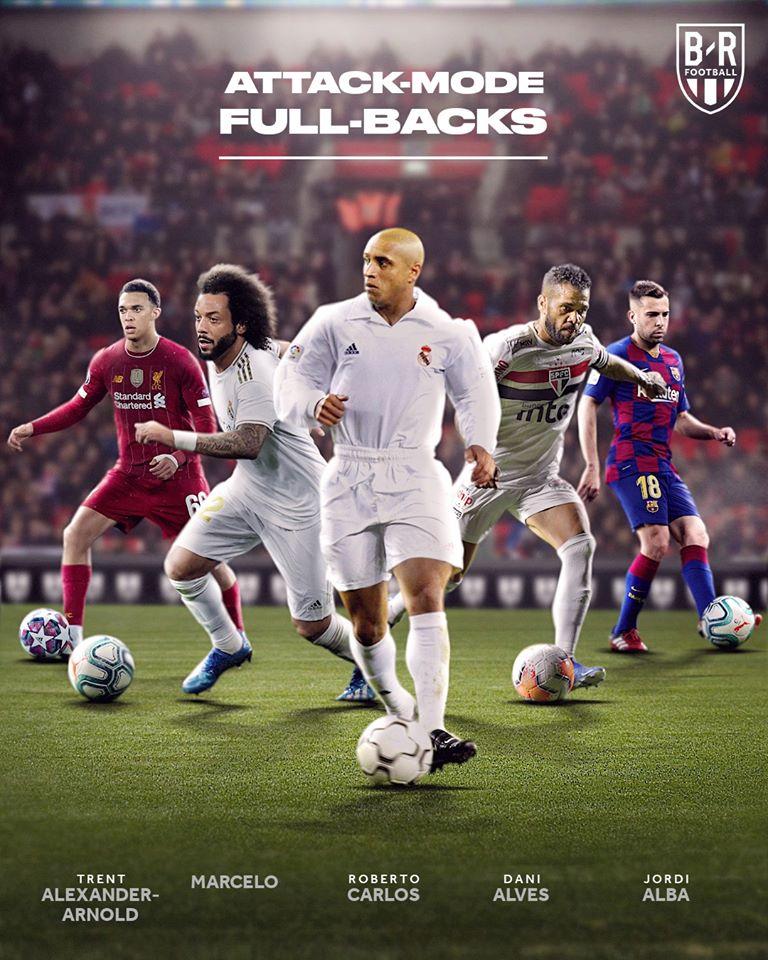 第四项,攻击性边后卫。大家都知道后卫一般的任务是防守,而边后卫由于位置的特殊,往往后插上的机会,所以具有攻击性的边后卫往往提供给球队的帮助非常巨大。代表人物有:阿诺德,马塞洛,卡洛斯,阿尔维斯,阿拉巴。