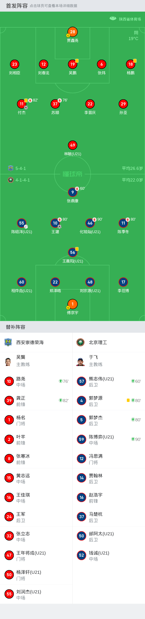 北京时间6月1日中国足球乙级联赛 预赛阶段 第10轮,西安崇德荣海主场对阵北京理工。西安崇德荣海付杰破门。北京理工王建破门。最终比分西安崇德荣海 1-1 北京理工。