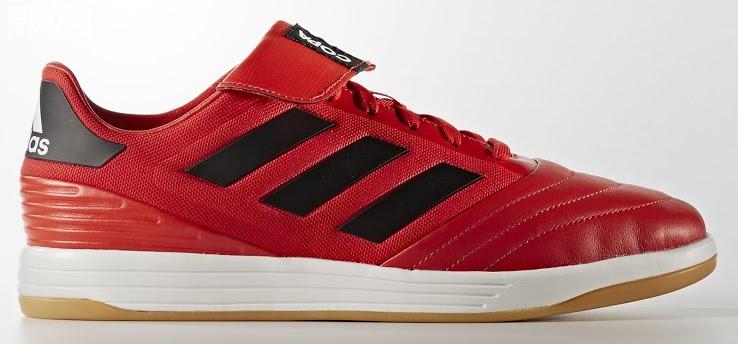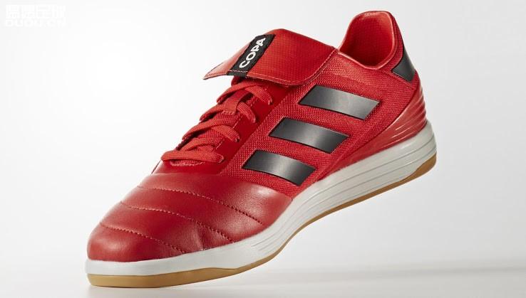这是全新的Adidas Copa 17.2 TR,是我们之前介绍过Adidas Copa Tango 17.1的次顶级版本。鞋身主要采用了红色,鞋身侧边的三道杠为黑色,同样的,它依旧有一个传统的外翻大鞋舌。