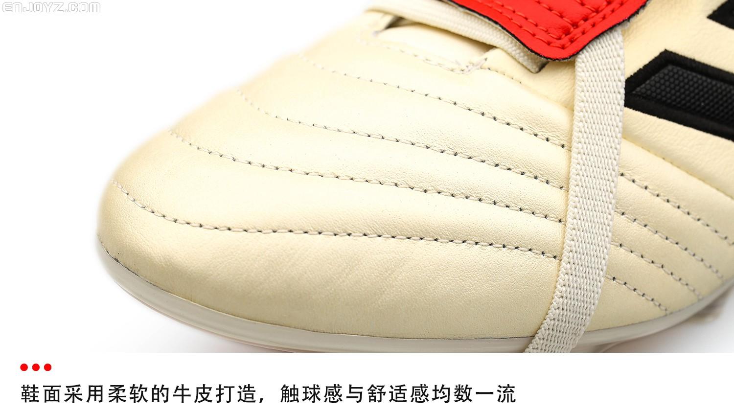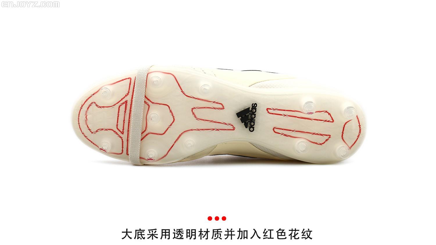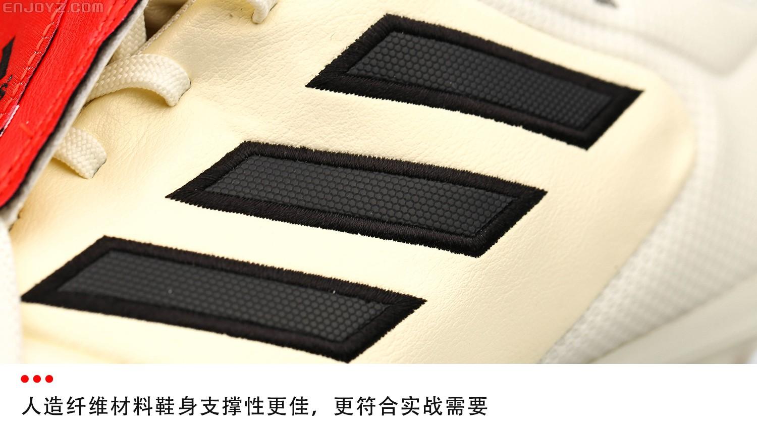 从技术上来看,Adidas Copa 17.2 TR依旧使用了天然皮革鞋面,只不过鞋面前半部材质变成了牛皮,鞋身后半部分依旧是合成材料。Adidas Copa 17.2 TR的中底是白色的EVA减震材质,并没有使用17.1中的Boost,这算是一个比较大的缩水。