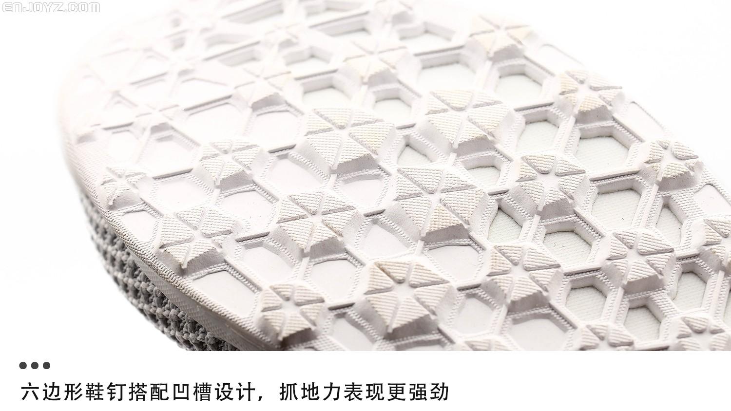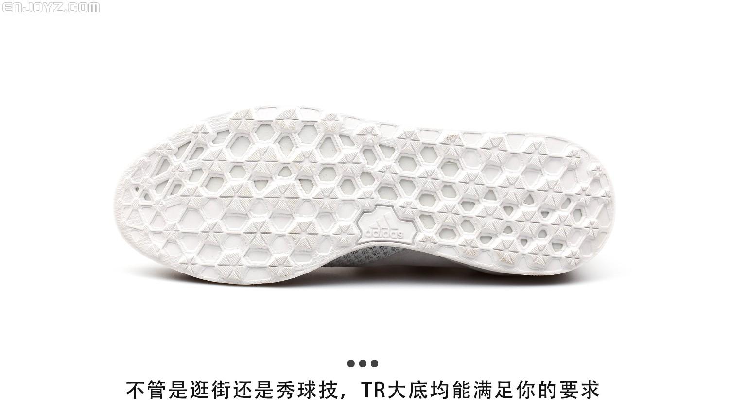作为训练鞋款,适应多种场地需求显然是最重要的。六边形鞋钉搭配凹槽设计的大底让你可以在各种场地上轻松秀球技。中底加入EVA缓震材料提升缓震性能,就算是作为平日穿着的休闲鞋款来压马路,也不会让双脚感到疲惫。