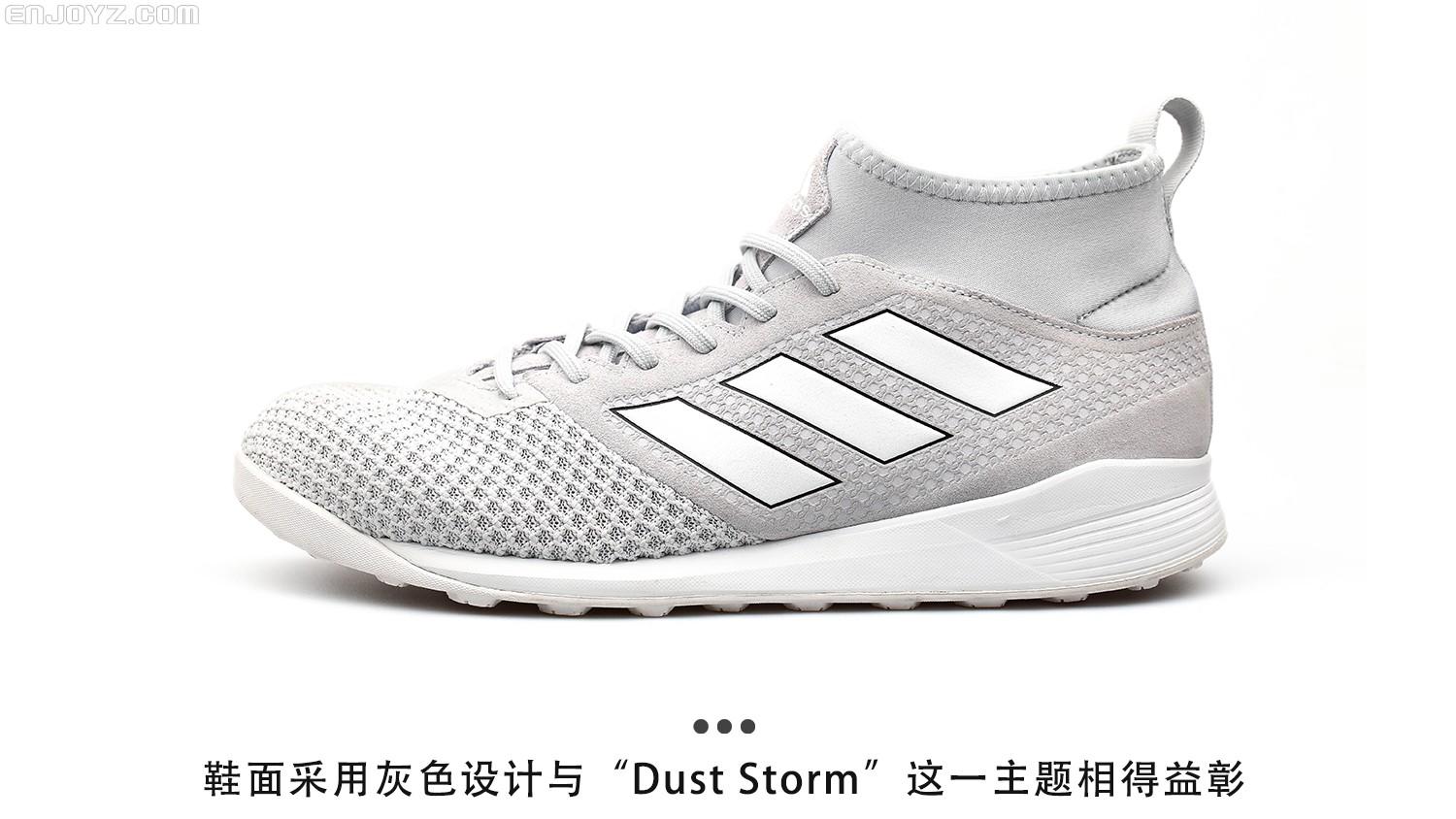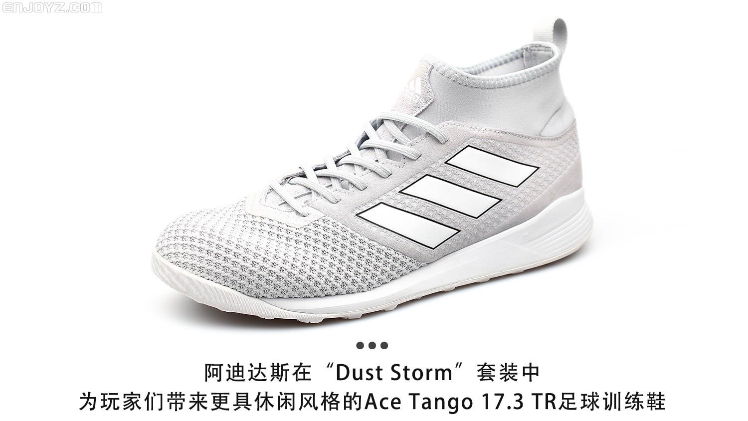 自从各大品牌将自己旗下足球鞋进行休闲化改造之后,让“足球狗”们平时出门逛街又多了全新的选择。不过一双好的足球休闲训练鞋除了穿着舒适之外,外观一定要够潮够酷才可以。阿迪达斯日前推出的全新“Dust Storm”足球鞋套装中就为足球狗们带来一双样子够酷并且价格亲民的足球训练鞋Ace Tango 17.3 TR “Dust Storm”。本期“新品赏析”就为各位EZer带来这双能陪你压马路秀球技的全新足球训练鞋。