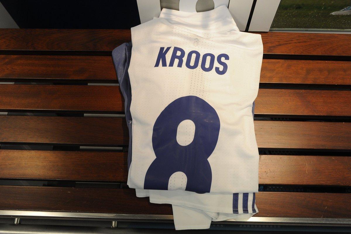 不同品牌、不同版本的球衣在细节上会有差别,前文提到的剪裁是一大重要表现,还有一些更细微的差别。比如耐克更衣室版本球衣采用的是热转印的水洗标,降低球衣标识带来的穿着影响;阿迪达斯更衣室版本球衣采用了数字尺码标(下图克罗斯球衣隐约透视数字尺码“6”号),球衣尺码精确到半号,比如7号球衣尺码介乎于M-L之间,让球员穿着起来更合适。还有一些细节,比如J联赛PUMA赞助的俱乐部球衣,虽然球员上身的衣服与球迷版几乎没差别,但是球员版的产地却是中国,而球迷版是越南。这些“进阶细节”只有当你仔细研究才会发现,但普通球迷在选购球衣时并不需要考虑这些。