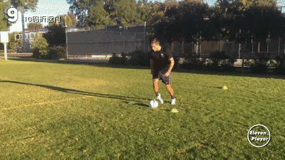 快速用双脚内侧左右来回拨球的同时向前前进大约10码的距离。