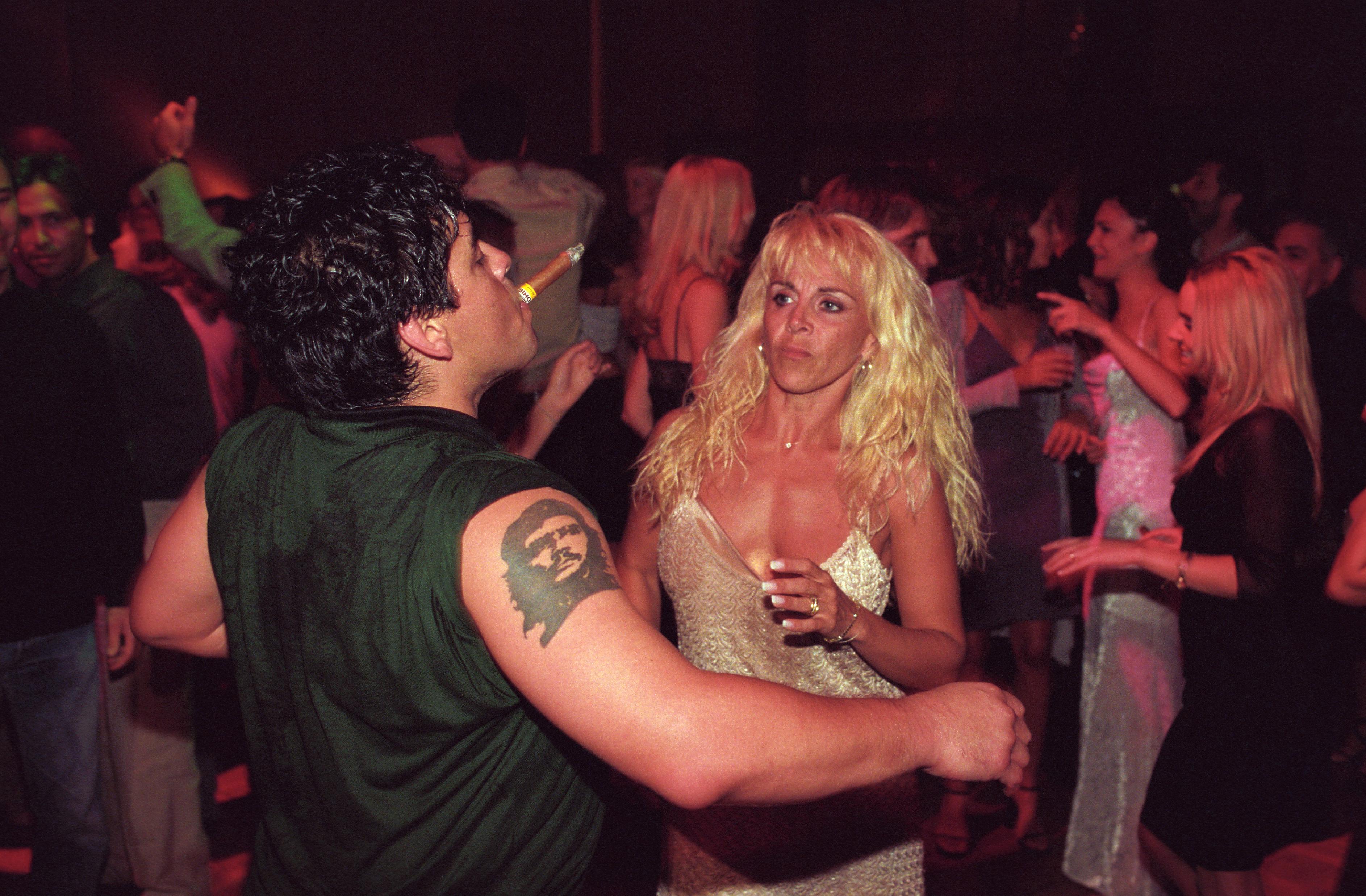 1999年1月9日在埃斯特角城的聚会上,迭戈·马拉多纳与他的妻子克劳迪娅·维拉法妮(ClaudiaVillafañe)跳舞,