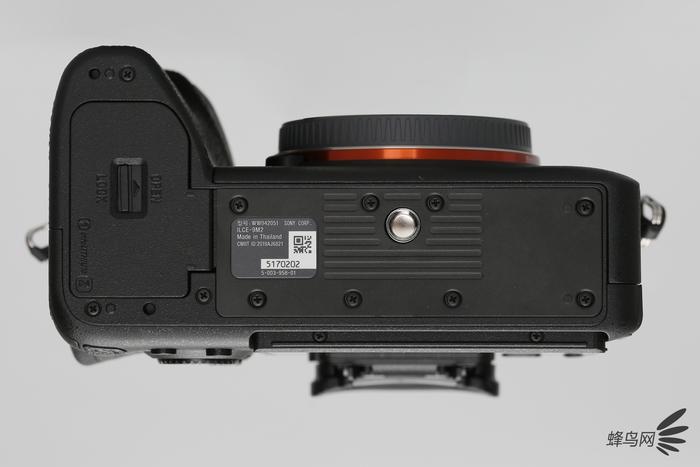 索尼α9 II机身底部的铭牌可以看到其产地以及机身编号,由于加厚了机身,我们可以看到此外底部的固定螺丝变成了11颗(此前索尼α7R IV为11颗、索尼α7R III为9颗、索尼α9为9颗、索尼α7R II为8颗)。