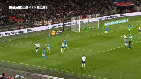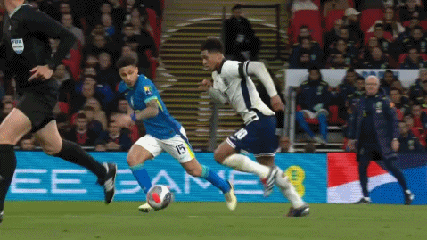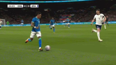 北京时间3月24日友谊赛,英格兰主场对阵巴西。上半场两队快速进行攻防转换,福登定位球打门稍稍偏出,罗德里戈低射打门被门将抱住,维尼修斯高速前插,打门被凯尔-沃克门前化解,沃特金斯禁区抢射高出,凯尔-沃克因伤离场,孔萨替补上场,沃特金斯传门前,贝林厄姆前插没能碰到皮球,帕奎塔禁区一脚推射击中立柱,马奎尔回传失误,拉菲尼亚打门偏出,半场战罢,场上比分英格兰0- 0巴西。