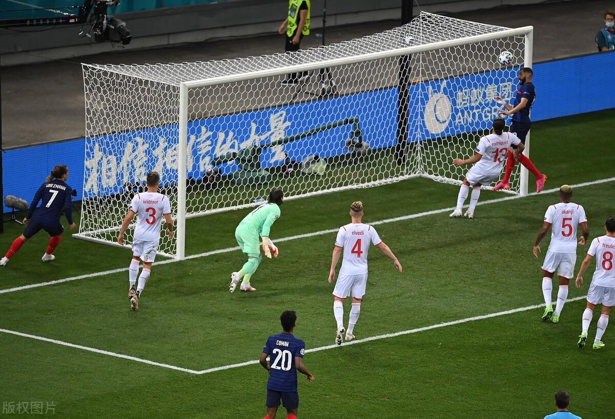 补时阶段,瑞士队替补出场的默罕默迪在禁区前脚软,失去了一次杀死比赛的机会。随后科曼在禁区左侧停球,右脚抽射击中横梁!比赛进入加时赛。
