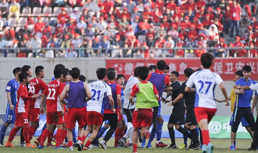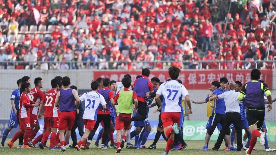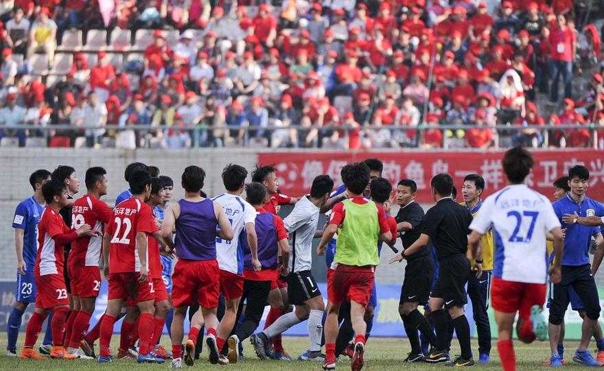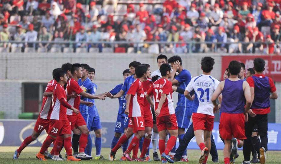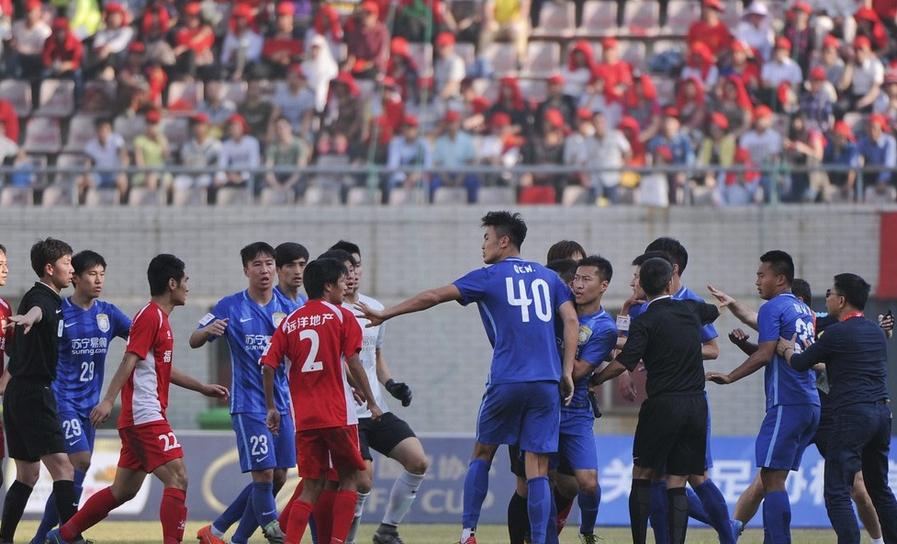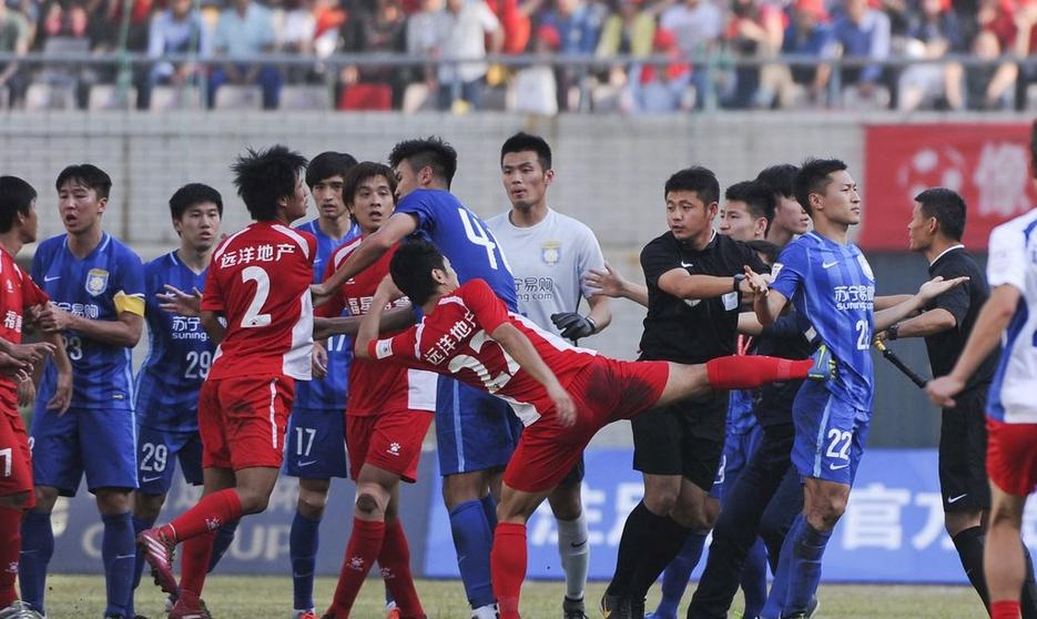 比赛结束后,双方球员情绪都很激动,随后爆发大规模冲突,武汉宏兴的柴雷还踹了苏宁核心吴曦。此外,有消息称苏宁主帅佩特雷斯库在看台也挨了打。