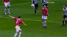 这样做是为了确保球更干净地离脚,接着,控制腿摆过的身体。然后支撑脚可以离地,当支撑脚离地后,踢球脚随之落地,这是腿部摆动的动量决定的。