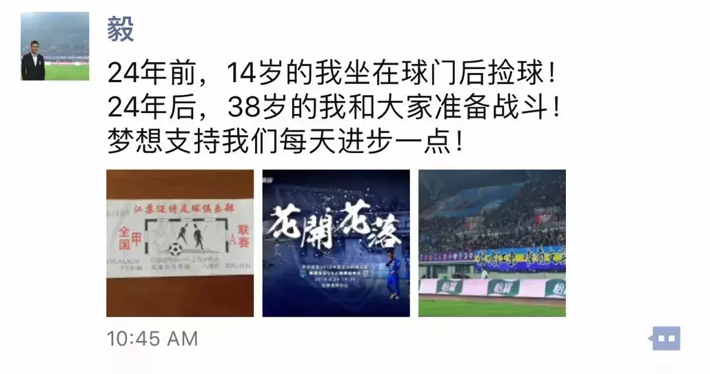 1994赛季甲A联赛的一场较量,江苏迈特主场迎战上海申花,当时14岁的李毅担任这场比赛的球童。
