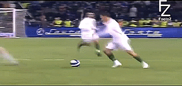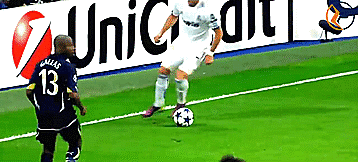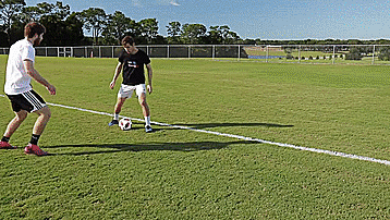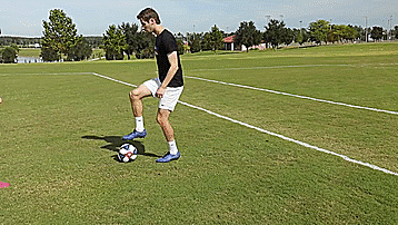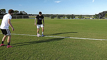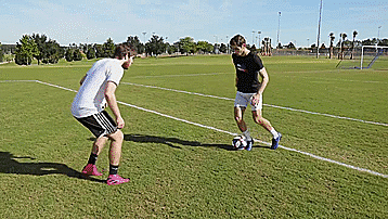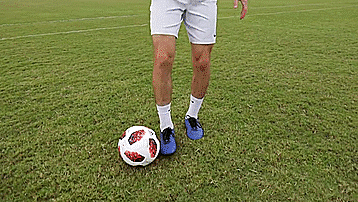用一只脚的脚内侧将球推向另一只脚,然后触球突破防守队员,这也是球场最有效率的技巧之一。