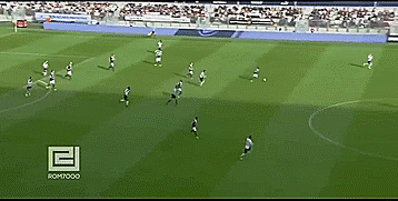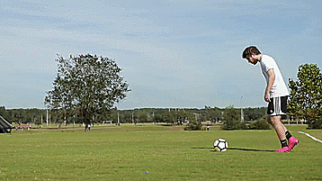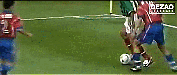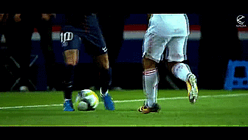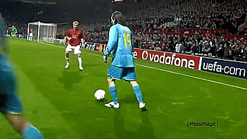 然后用脚背推球向另一个方向,这是梅西的拿手绝活。