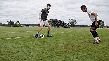 我们还可以将这个动作升级,像梅西一样加一个沉肩的晃动,非常实用。