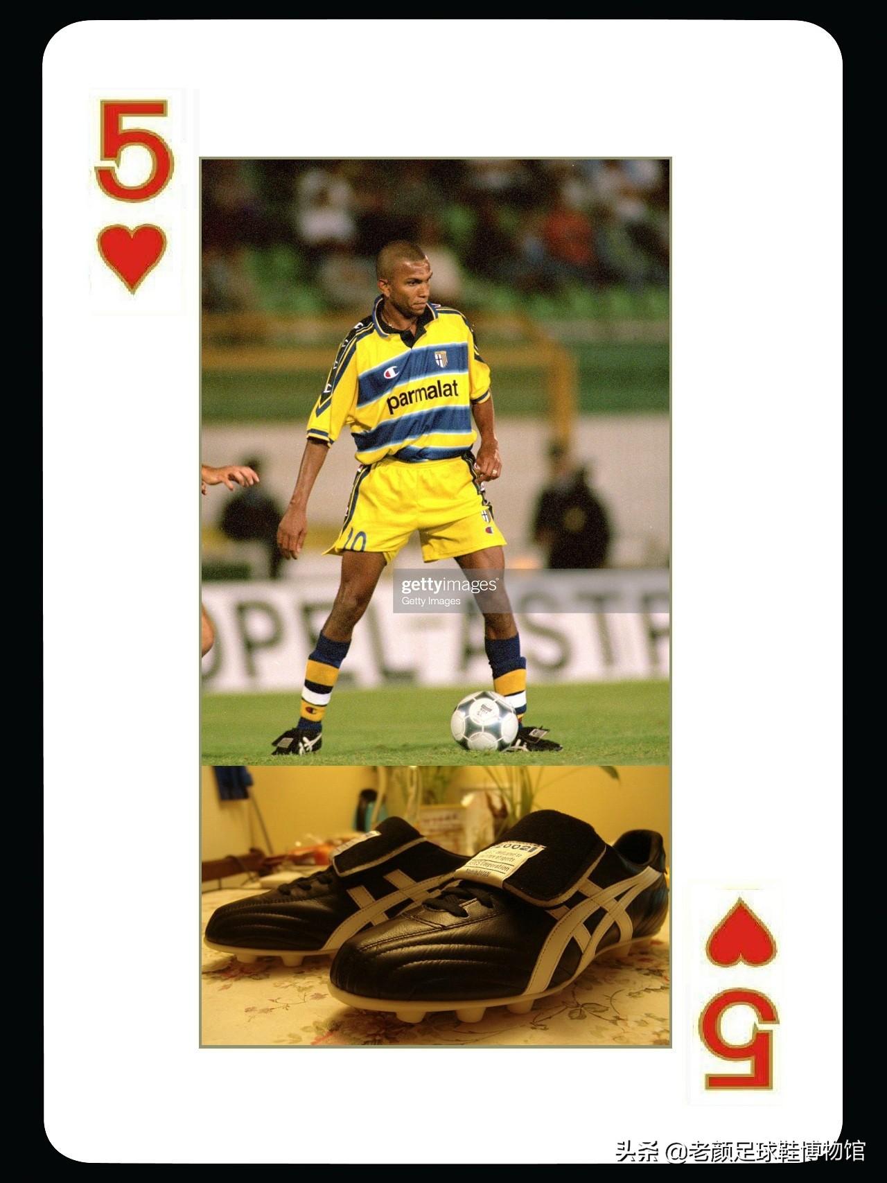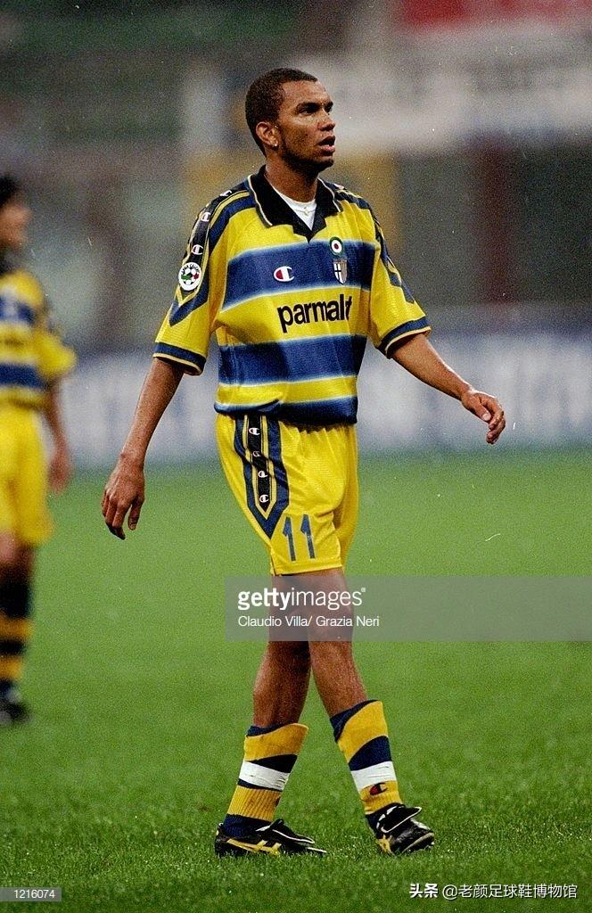 下面这位巴西人也是生不逢时,他就是帕尔马前锋阿莫鲁索,曾经获得过巴甲,意甲,德甲最佳射手头衔,却因为外星人罗纳尔多的存在,在巴西队很少有机会出场。阿莫鲁索在职业生涯早期曾经加盟过日本j联赛的川崎绿茵,当时球队中有asics代言人巴西归化球星拉莫斯。可能在他的影响下,他也喜欢上了asics球鞋,在加盟乌迪内斯时他穿的就是asics球鞋,不过他的穿鞋风格偏重日系,在帕尔马时期穿的injector日产,在多特蒙德穿的ds light,都是袋鼠皮材质的球鞋。