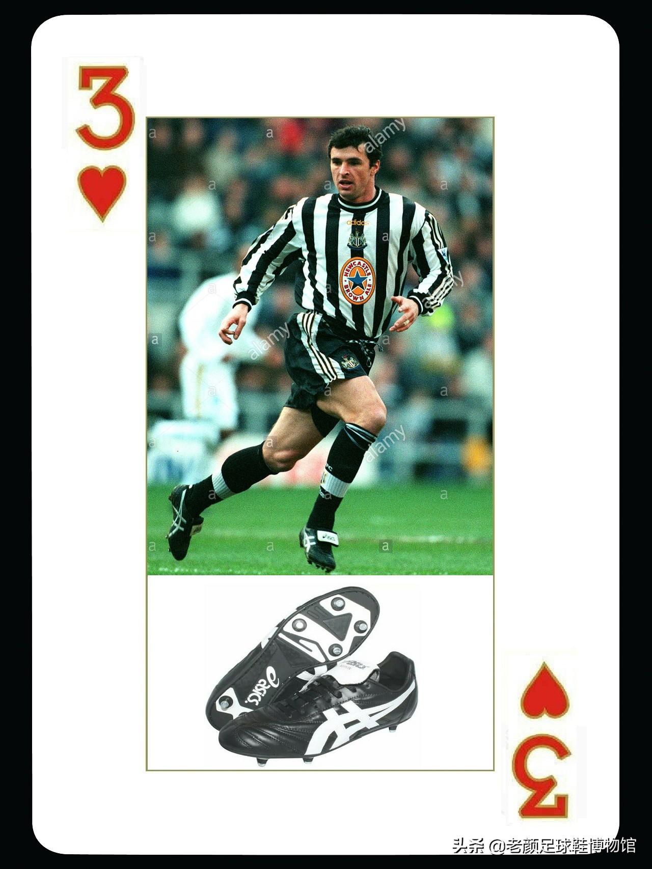 下面来介绍两位比较特别的代言球星,他们都已经离世,一位是我们熟悉的威尔士球星加里斯比德,他曾经效力利兹联,埃弗顿,纽卡斯尔,博尔顿等俱乐部,和坎通纳做过队友,他是英超有名的硬汉,被称为活化石,参加过超过400场英超比赛。斯比德在利兹联时期就为asics代言,还获得过末代英甲冠军,他也是威尔士队的领军人物,在退役后成为了欧洲红龙的主帅,没想到在2011年11月自杀身亡。