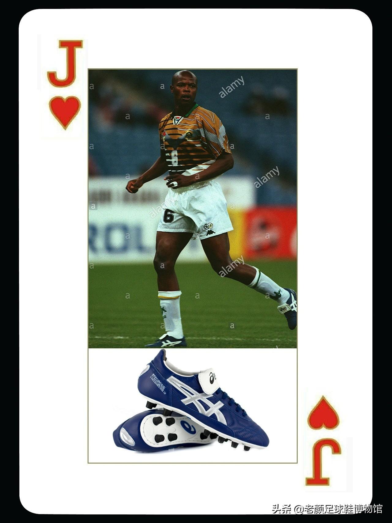 最后一位是球星也是在利兹联成名的,南非国脚马辛加,1994年,他从南非国内转会利兹联,当时利兹联是asics赞助,马辛加也在不久后换上了asics球鞋,之后他一直使用asics的testimonial球鞋,还使用过蓝色的版本。当时他是南非队的主力前锋,帮助球队获得了1996年非洲杯的冠军。之后他从瑞士联赛辗转来到意大利,加盟了巴里队。还参加了1998年世界杯,当年马辛加在实况游戏里的数据非常强悍,几乎可以说是低配版巴蒂。2019年初,马辛加因癌症去世,享年49岁。